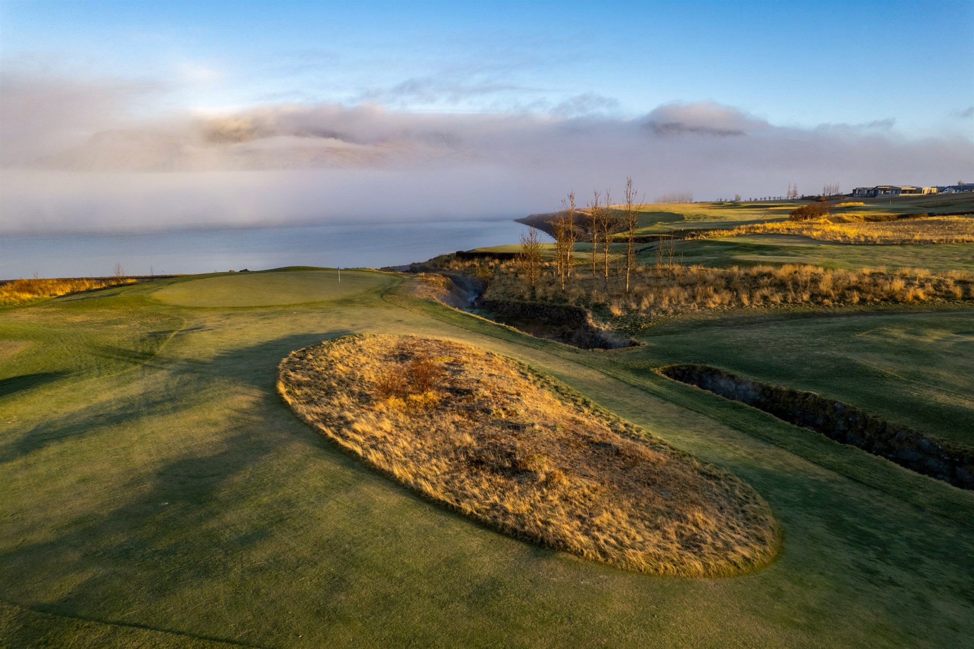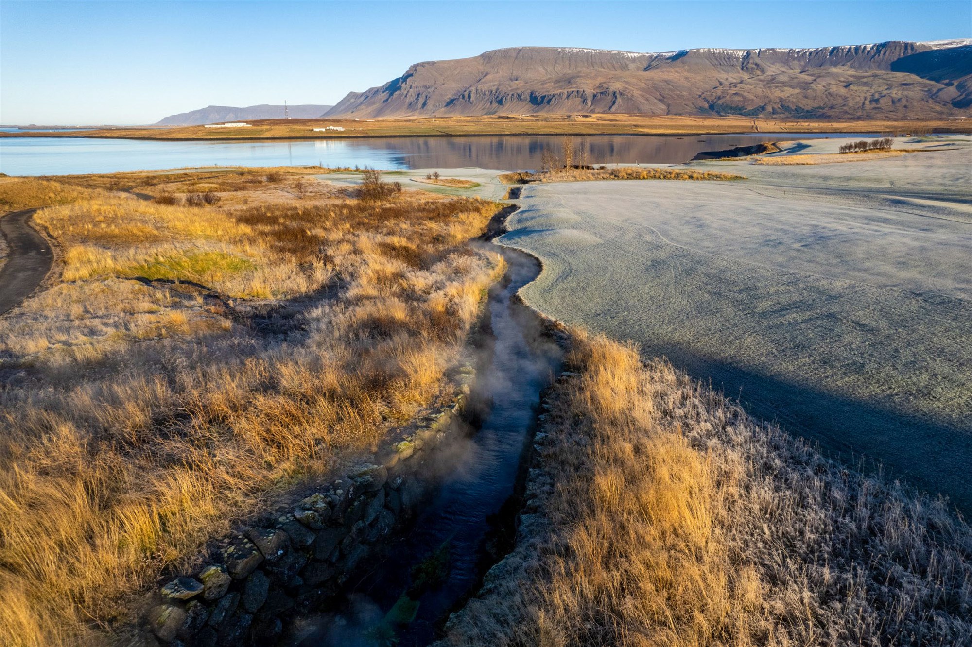 Þessar mögnuðu myndir voru teknar nýlega yfir Hlíðavelli í Mosfellsbæ einn fallegan haustmorgun.