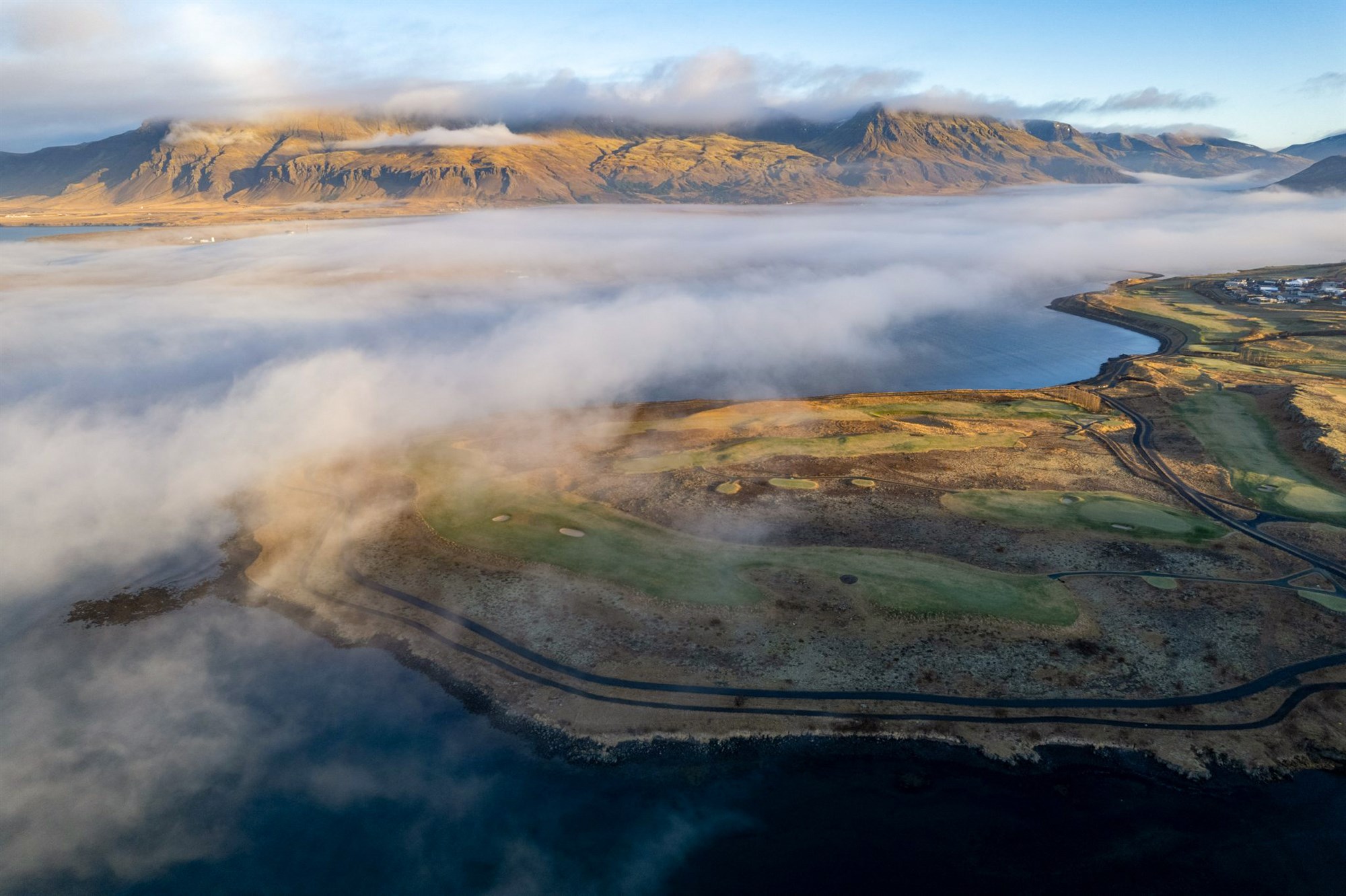 Meðfylgjandi myndir og video sýna Hlíðavöll skarta sínu fegursta á þessum árstíma, í blankalogni, haustsól og skýin hvíla yfir sjónum.