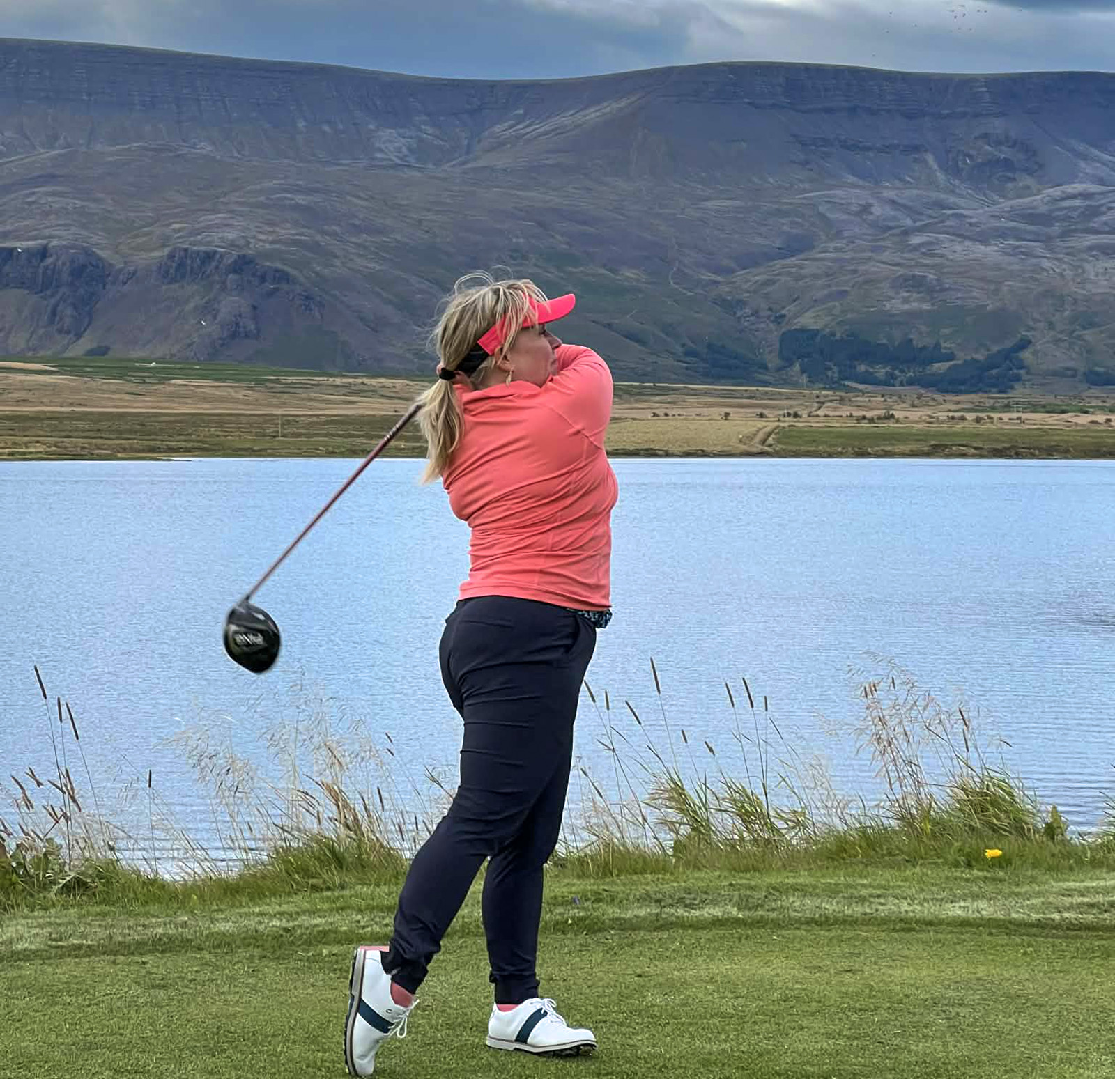 Þau hafa ekki enn litið dagsins ljós. Kannski er það þó afrek í sjálfu sér að hafa hent sér í þetta. Enginn í mínu nánasta umhverfi spilar golf eða hefur haft áhuga á því. Þegar ég var orðin vallarhæf var því ekki um annað að ræða en að henda sér ein á rástíma með ókunnugum. Það verður svo afrek þegar maðurinn minn fellst á að taka 5 kennslustundir.