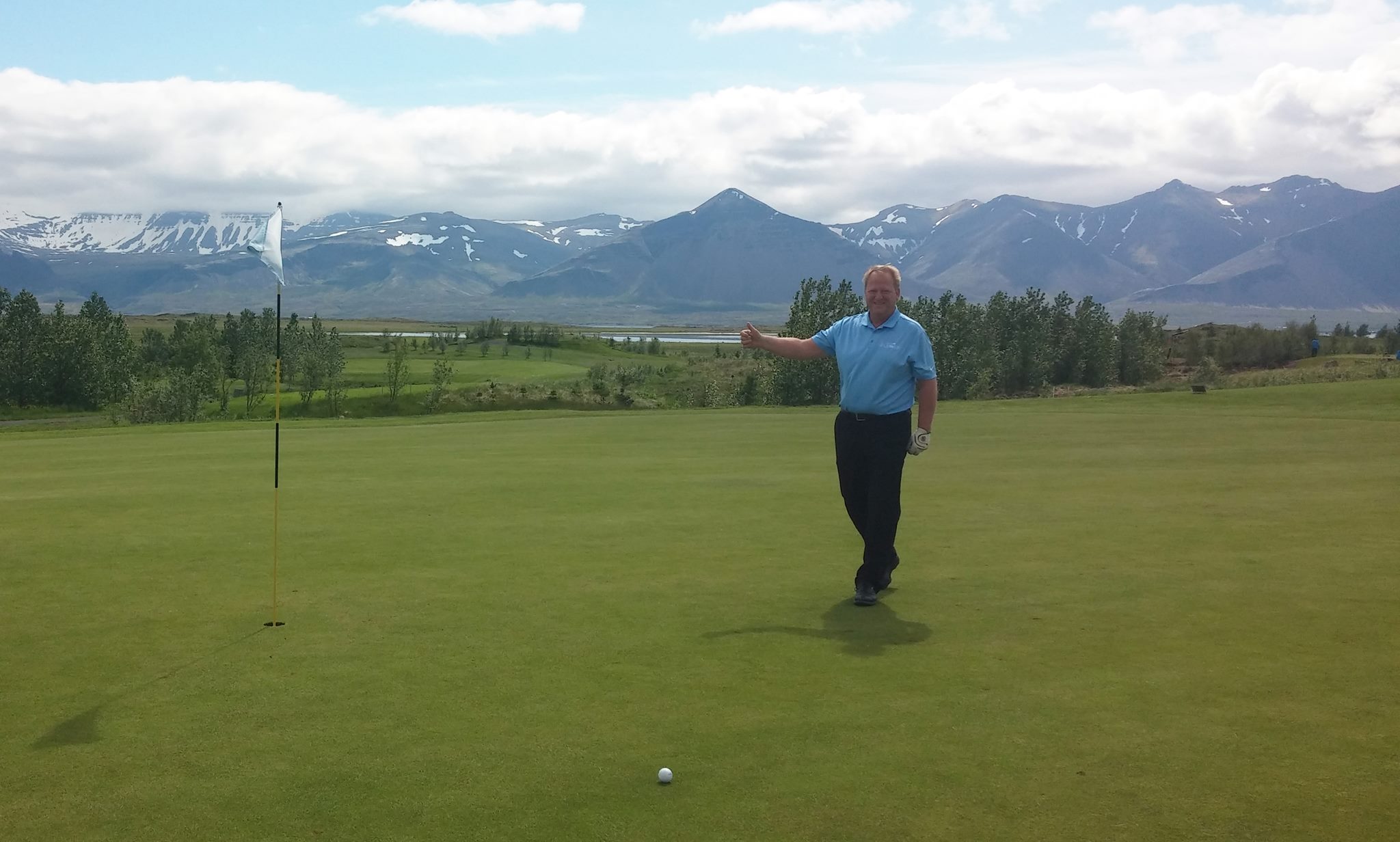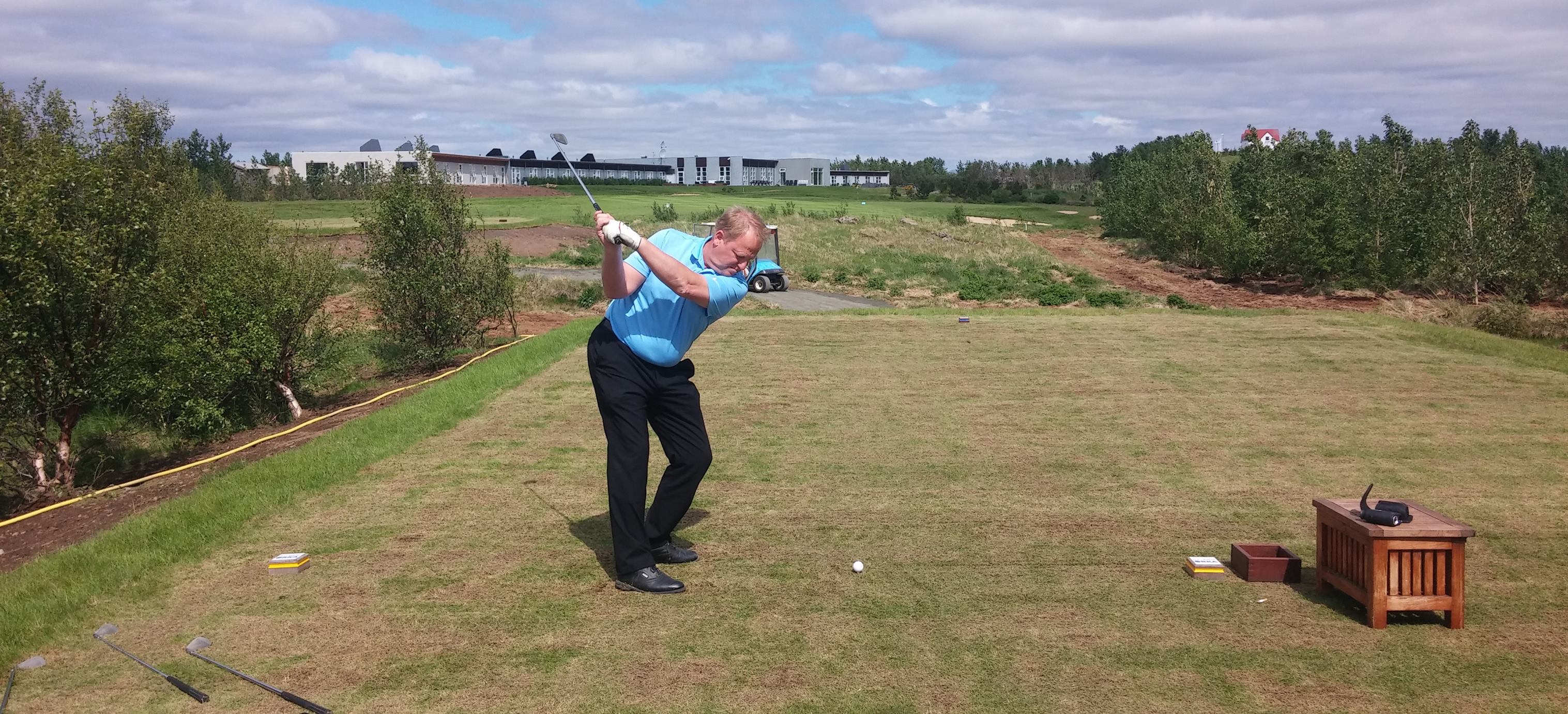 Hótelstjórinn á Hótel Hamri, Sigurður Ólafsson tók nýju teigana formlega í notkun fyrr í vikunni og gerði hann sér lítið fyrir og sló 3 metra frá holu. Ekki fylgdi sögunni hvort að púttið hafi endað ofan í holu.