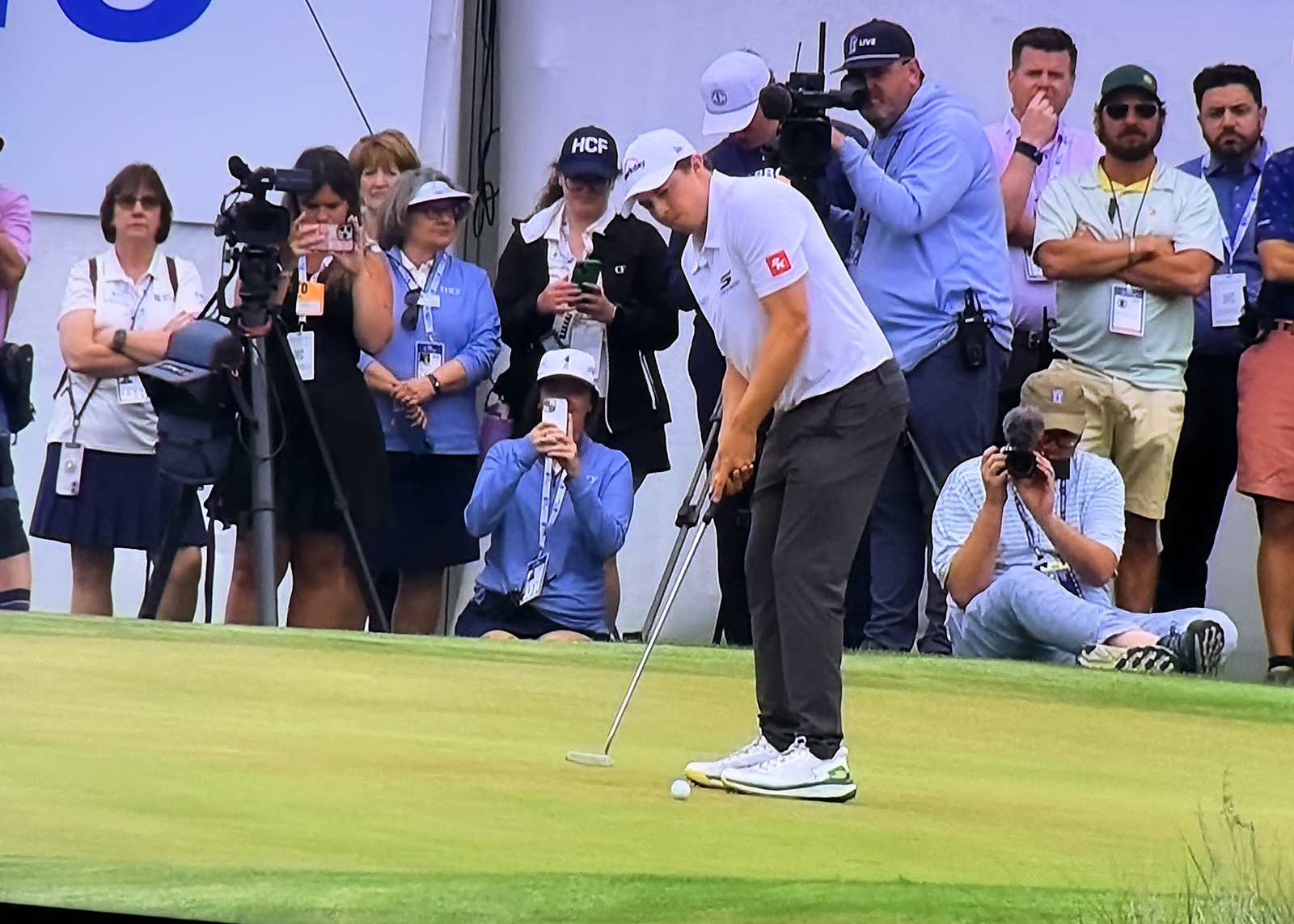 „Við vorum að spila 'qulifying' fyrir mót vorsins á The Fields vellinum í Georgíu. Þetta var hola 4 og var hún um 165 metra löng í smá mótvindi. Ég sló létt 6 járn til að halda boltanum undir vindinum. Ég sló lágt 'draw' sem lenti um 3 metra fyrir framan pinnann og rúllaði svo rólega ofan í.“