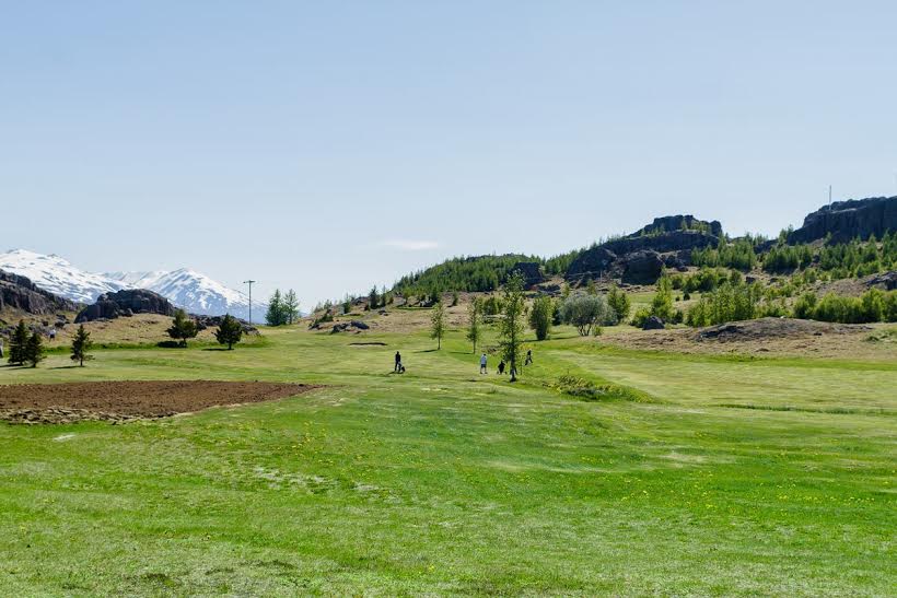 Séð frá 5. brautinni yfir á þá sjöttu.
