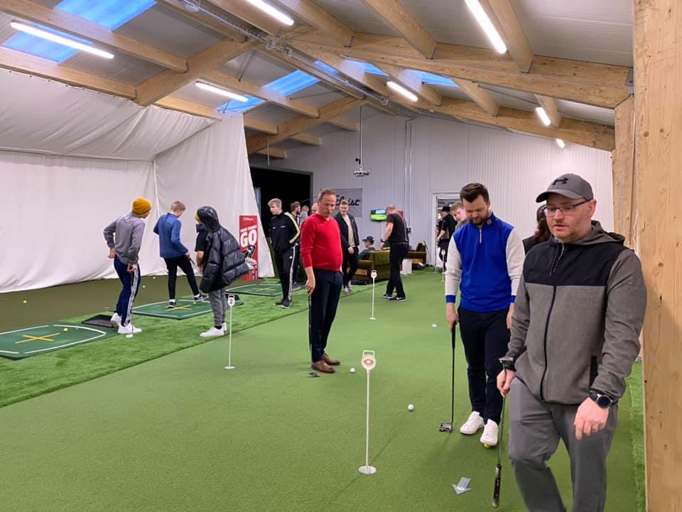 Það var fjölmenni við opnunarathöfnunina í dag þar sem félagsmenn og gestir kynntu sér aðstöðuna, prófuðu hermirinn og síðan var haldið púttmót í tilefni dagsins.