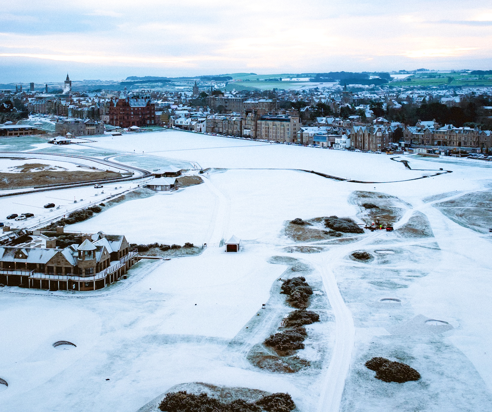 Mekka golfsins, St. Andrews sleppur ekki við snjó.